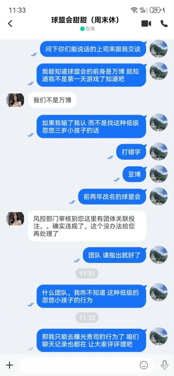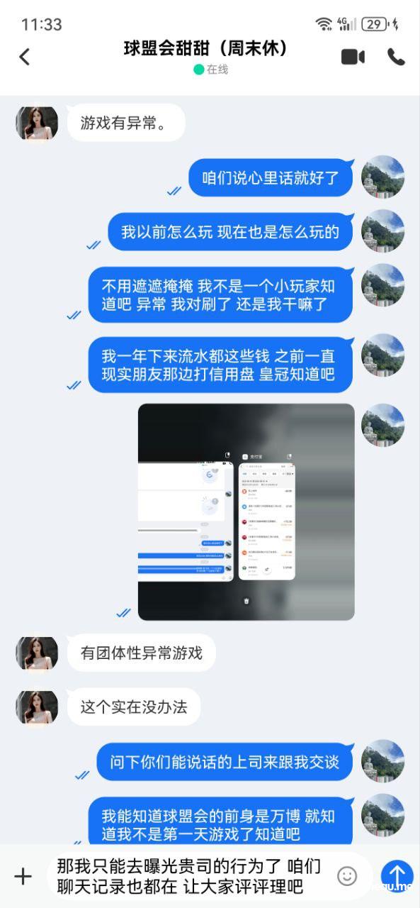 几年前套着亚博的名字 后面更名为球盟会,多年以来一直在这个平台玩 这几天输麻木了所以注册了新号在这边继续开始,没有做代理线,不存在任何套利行为,试问我一个输了千百万的人需要做这种事?估摸着改改运 秉承着老玩家有始有终的态度 所以没有任何防备 还是跟以往大手大脚的下注情况一样 毫无疑问