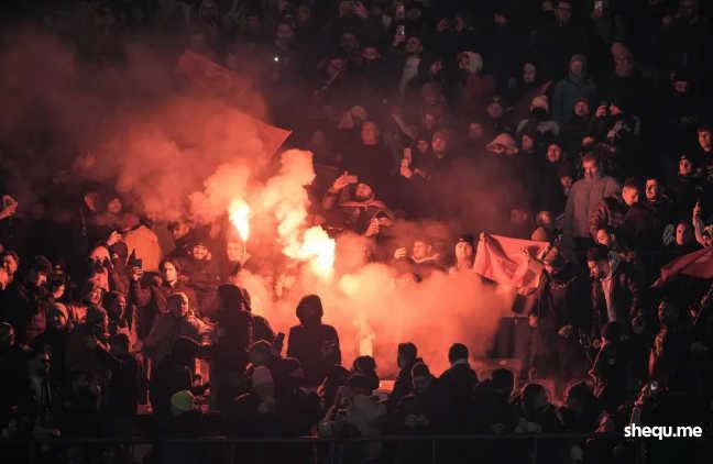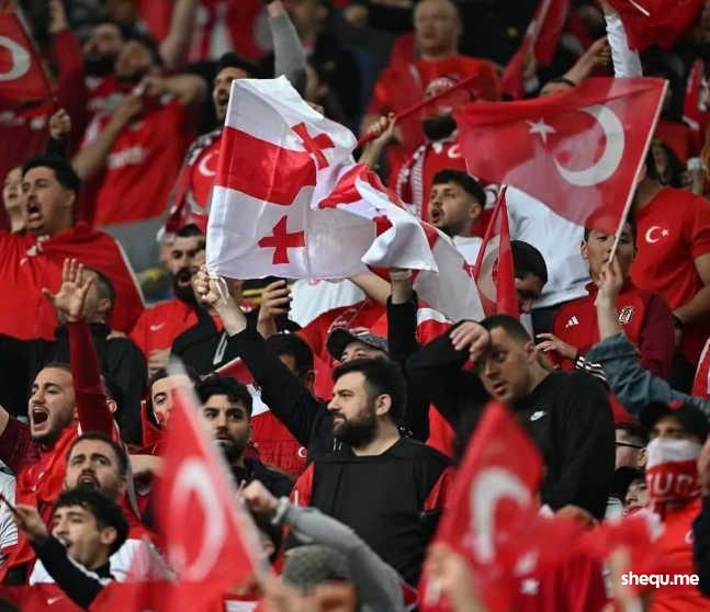 孤独的格鲁吉亚球迷,被土耳其的红色海洋包围