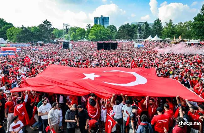 从柏林到科隆,从汉堡到埃森,数十万的土耳其球迷游行狂欢,庆祝自己1200公里外的另一支国家队取得8年来的首场欧洲杯胜利。