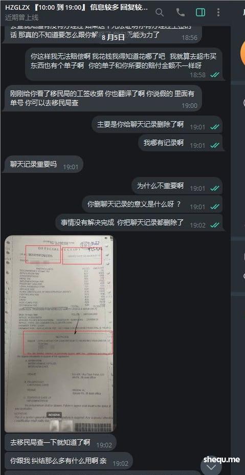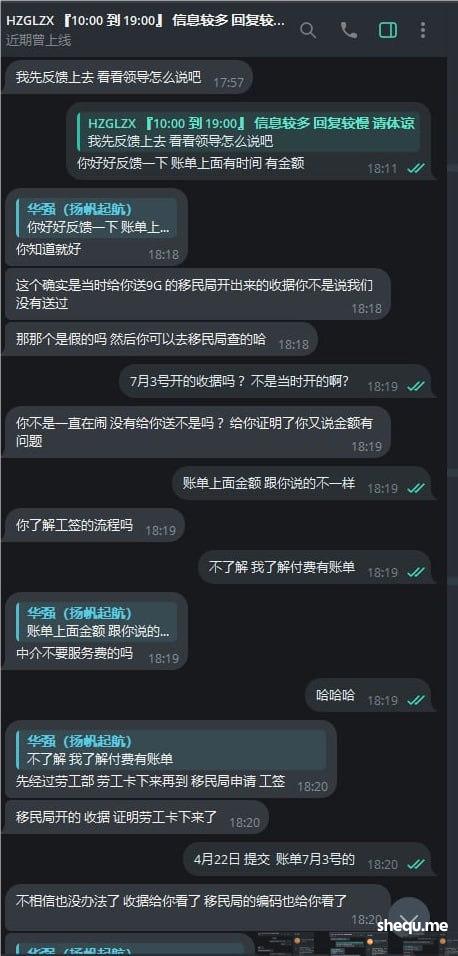 护照组那边问题没处理完问题删除聊天记录,心里没有鬼为什么删除聊天记录?护照组工作人员说2024年4月22日给我提交办理9G记录,《全款支付》 护照组只给出一份办理9G的单据金额为18590p 账单日期是7月3日   账目组说办理就9G只有一张45000P的首付和40000P的尾款 ,不承认有18590P的支付账单,不知道哪个部门在撒谎,