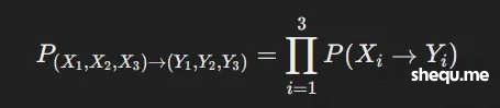 对于每个 i,P(Xi→Yi)=1/3,因此整个状态转移概率矩阵 P 是一个 27×27 的矩阵,其中每个元素等于 1/27。