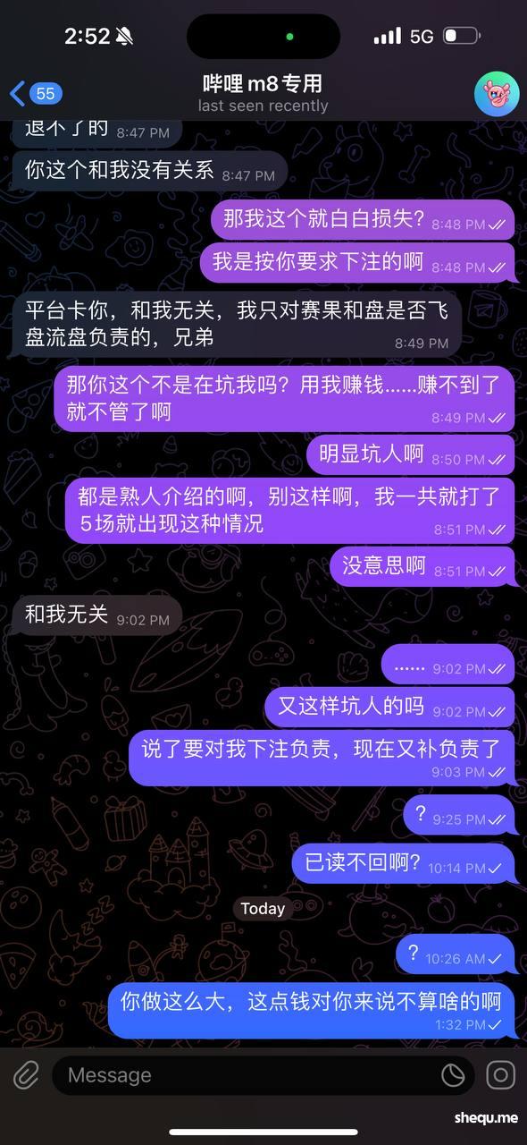 贷款20万,被朋友坑,被平台卡款,本人一直喜欢赌球和百家乐,平时买得也比较大,最近一年多在皇冠信誉盘和现金网输了大概150万,上个月在朋友的介绍下接触了电竞游戏方面的协议假赛,当时我也知道天下没有掉馅饼的事,耐不住看着朋友一直赚钱我就联系了我朋友,然后就给我推荐了一家在✈️上面做的很大的机构,该机构在搜索群排名第一,观察了很多天却是做的很大,一直没有尝试,后来朋友分我协议赛的额度我玩了几天发现能赚钱,我就开始联系做协议群的老板,此刻的坑人套路就开始了,老板叫我在现金网用级别高的会员号去打协议,利润要分他同时还要支付宝比赛的料钱,如果飞盘和卡款是会给我退料钱的。本人在开云一个月5000多万的流水,VIP等级9,因为电竞我没有接触过,刚开始打的时候,很多比赛下注都有限红,下注很少。前面导致我比赛中了加分他料钱一直都是亏本。陆陆续续下了2场大比赛之后就有盈利了,最后两场料子打完,问题就来了,我充值了8万元,赢了1场之后,就被平台卡款了,找了各种客服处理,说我账号有刷水套利的风险,把我账号给禁封了,加上给他的料钱和分的利润和平台的卡款,一共损失14万多,平台和料方都处理无果,甚至不回消息。回想一下,这其实就是一个难以发现的套路,假赛哪里都有,可是我们这种底成的人能赚钱吗?平台敢开这个盘,它不知道是否有假赛吗?其实就是盘的推手,你就算赢也赢不了多少,它们收取费用。是用自己的钱帮盘打工,等你真的赢钱的时候,5次6次或者很多次的时候平台会联合这个的庄一起连本带利的把吃掉。永远不要用现金网赌,赌的尽头就是被坑!